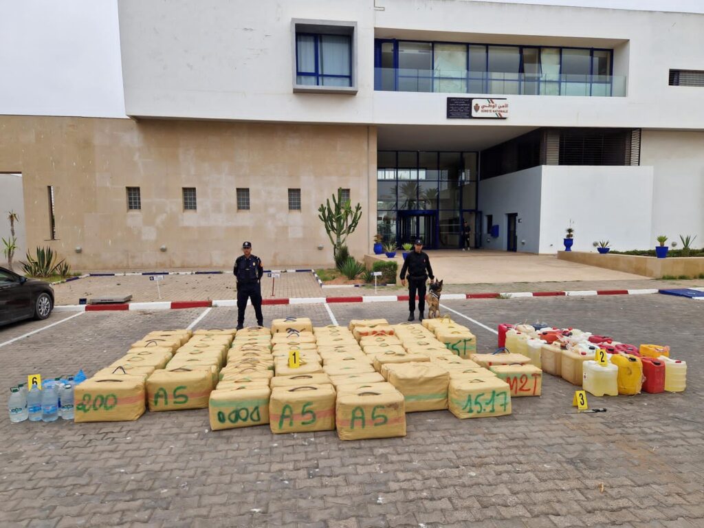 وقد تم تنفيذ هذه العملية الأمنية على مقربة من الشريط الساحلي بالمنطقة القروية سيدي إسحاق، حيث أسفرت عن حجز 80 رزمة من مخدر الشيرا بلغ مجموع وزنها حوالي ثلاثة أطنان و30 كيلوغراما، علاوة على 29 حاوية بلاستيكية تضم 725 لترا من المحروقات.