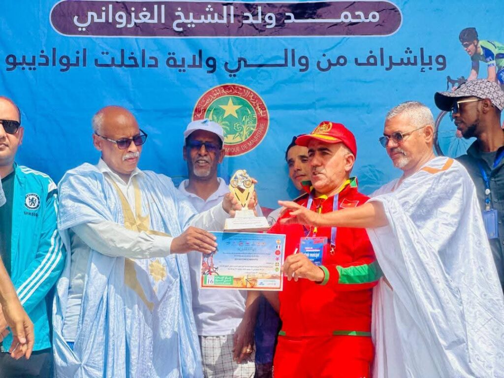 واختتمت التظاهرة بحفل لتوزيع الجوائز على الفائزين، تخلله تكريم خاص من والي جهة العيون الساقية الحمراء، الذي سلمه السيد البغراوي لوالي ولاية داخلت نواذيبو، إضافة إلى تكريم عدد من الشخصيات الأمنية والعسكرية التي أسهمت في إنجاح هذا الحدث الرياضي.