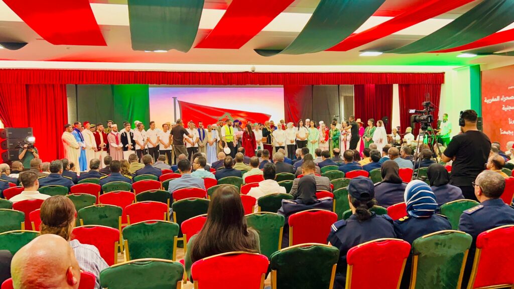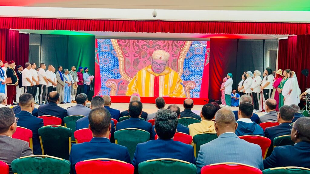 كما تألق المشاركون في العرض الفني الوطني الضخم “أوبريت مسيرة وطن”، الذي جمع بين الغناء والدراما لرقص التعبيري، مستحضرًا اللحظة التاريخية لإعلان المسيرة الخضراء وما تحمله من قيم الإيمان والوحدة والعزيمة. وقد نال العرض استحسان الحضور الرسمي والجمهور، لما عكسه من مستوى إبداعي راق وتنظيم محكم يجسد الرؤية الإصلاحية والإنسانية التي تنهجها المندوبية العامة تحت القيادة الرشيدة لصاحب الجلالة الملك محمد السادس نصره الله.