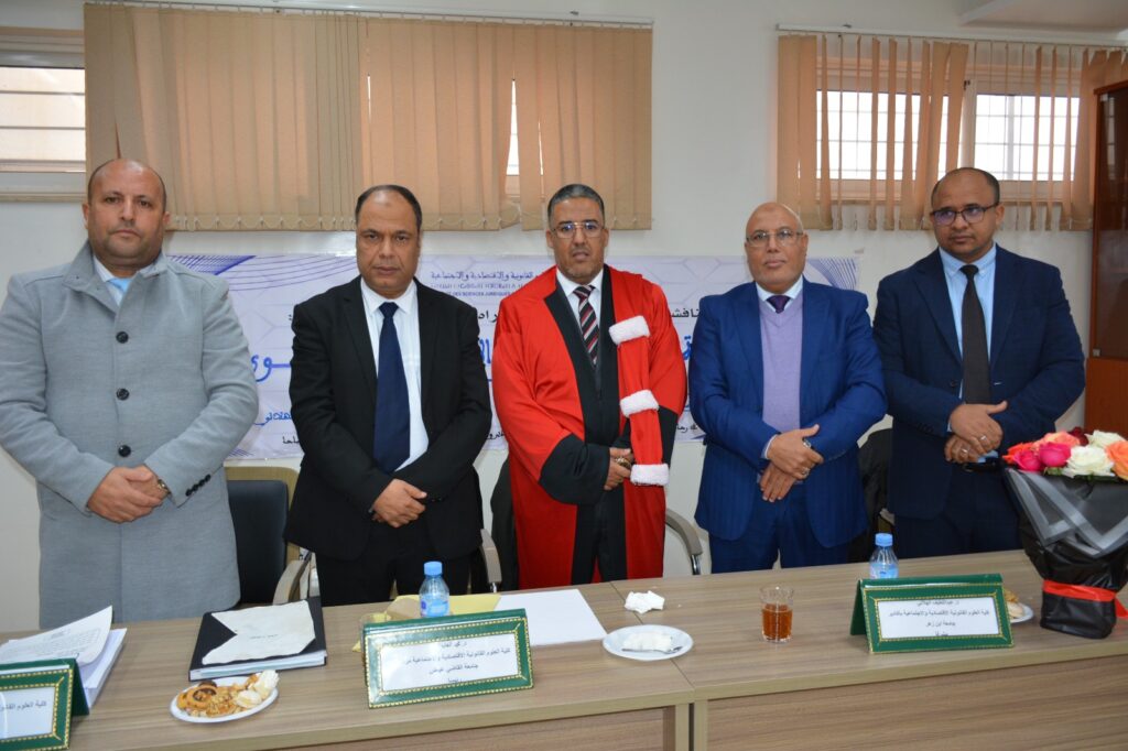 وقد جرت المناقشة أمام لجنة علمية ترأسها الدكتور المهدي الفحصي استاذ التعليم العالي كلية الحقوق بن زهر أكادير وضمّت في عضويتها الدكتور عبد اللطيف الهلالي مشرفا استاذ التعليم العالي بكلية الحقوق جامعة إبن زهر ، والدكتور محمد العابدة أستاذ التعليم العالي كلية الحقوق بجامعة القاضي عياض مراكش و الدكتور محمد المجني أستاذ التعليم العالي كلية الحقوق جامعة إبن زهر ، والدكتور جواد الرباع استاذ محاضر مؤهل كلية الحقوق أيت ملول جامعة بن زهر أكادير،حيث نوهت بأهمية الموضوع وجودة العمل الأكاديمي مع التوصية بالنشر بتقدير جيد جداً