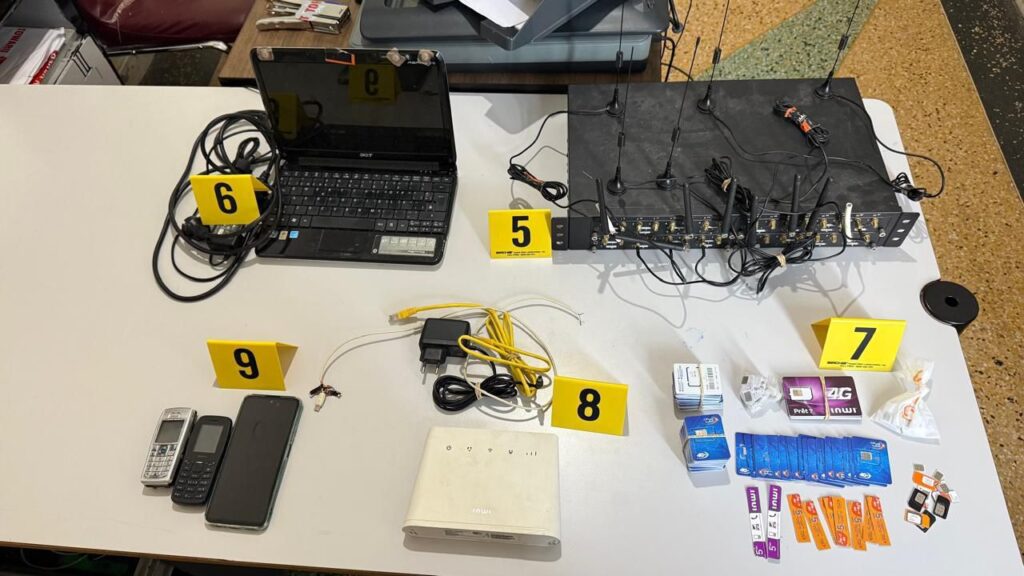 وقد أسفرت عملية التفتيش المنجزة داخل الشقة التي يستغلها المشتبه فيه، عن حجز عدة شرائح للاتصالات الهاتفية الوطنية، بالإضافة إلى حاسوب محمول، وأجهزة إلكترونية ودعامات معلوماتية متنوعة تستعمل في هذا النشاط الإجرامي.