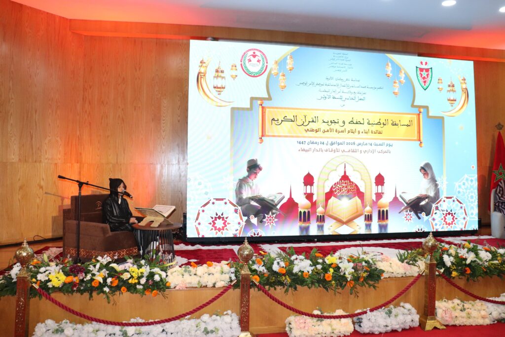 نظمت مؤسسة محمد السادس للأعمال الاجتماعية لموظفي الأمن الوطني بتعاون وشراكة مع ولاية أمن الدار البيضاء، يوم أمس السبت 14 مارس الجاري، فعاليات المسابقة النهائية في حفظ وتجويد وترتيل القرآن الكريم لفائدة أبناء أسرة الأمن الوطني، والتي جرت أطوارها بقاعة المحاضرات بالمركب الثقافي و الاداري التابع لوزارة الأوقاف والشؤون الاسلامية بمدينة الدار البيضاء.